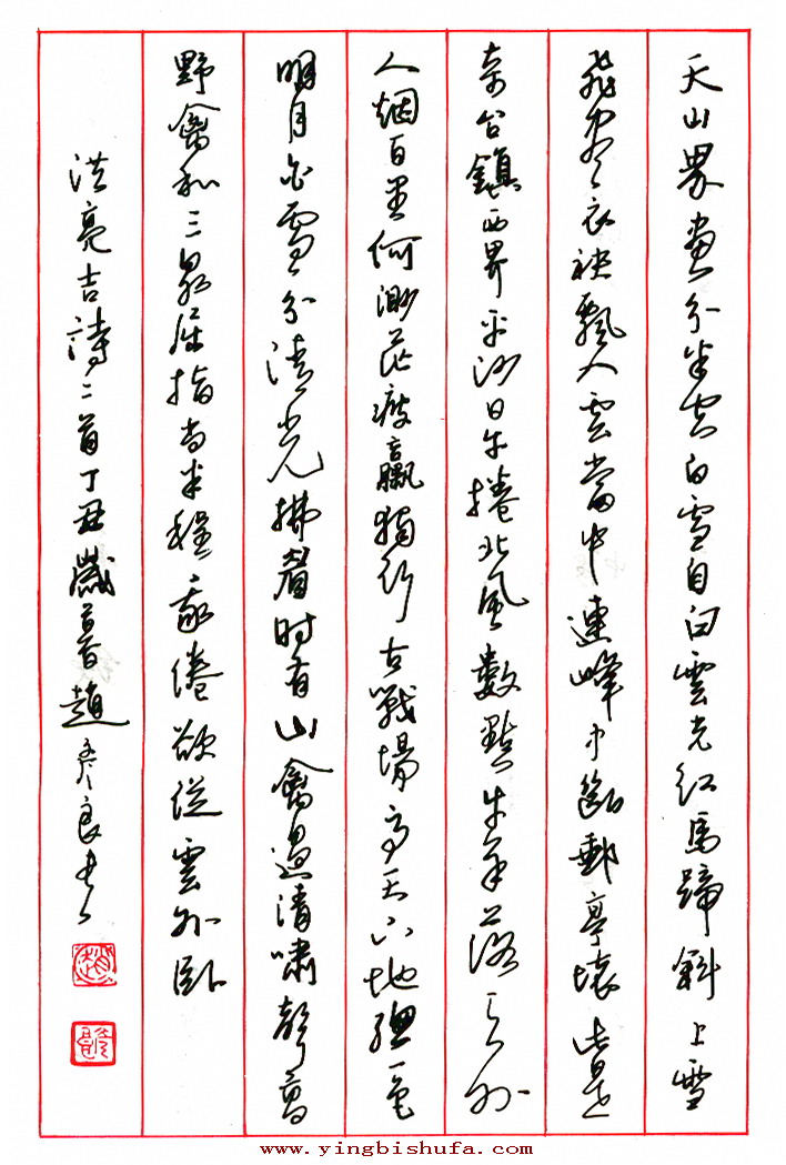 赵彦良硬笔行书洪亮吉诗二首(来源:《当代中国硬笔书法21家》)