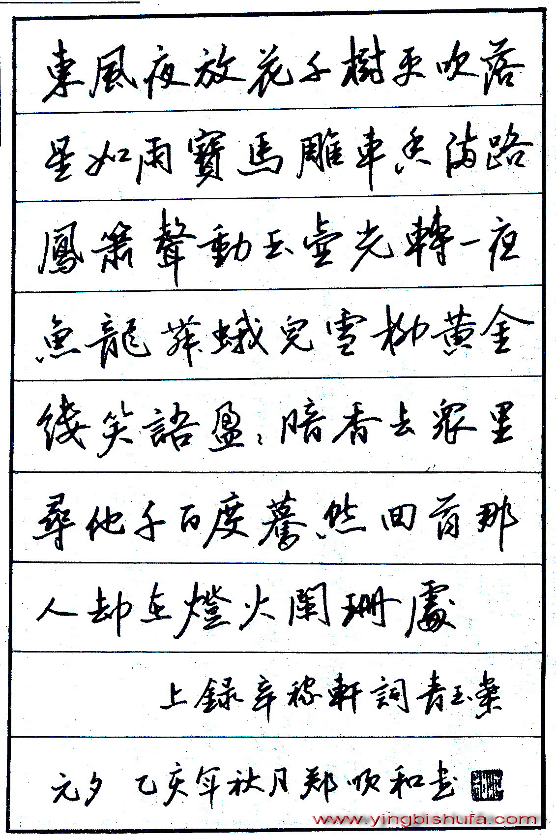 郑顺和硬笔录辛稼轩词青玉案元夕(来源:《中国钢笔书法》杂志)