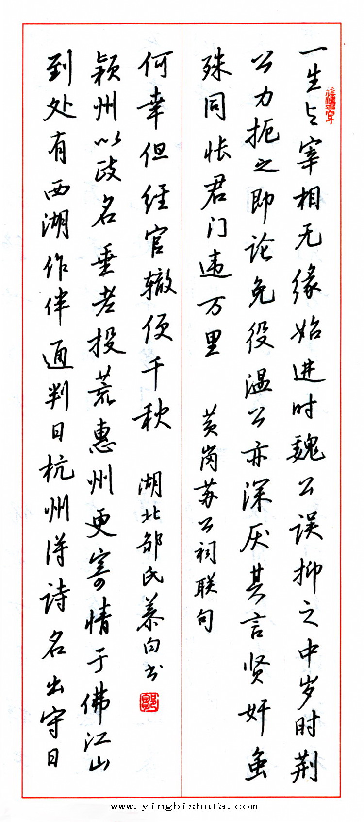 邹慕白硬笔行书黄岗苏公祠联句(来源:邹慕白《实用对联字帖》)
