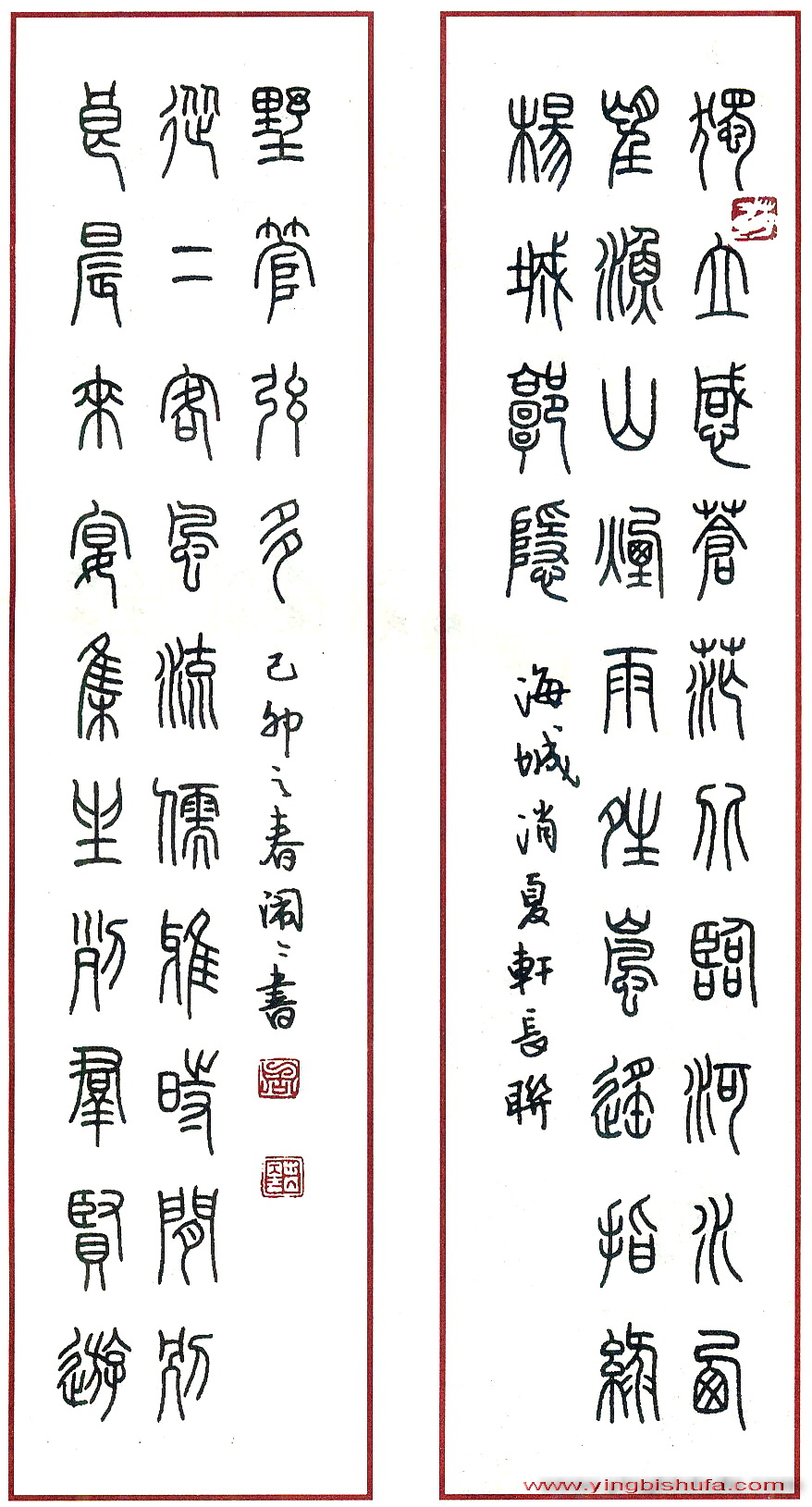 周闹闹硬笔录海城消夏轩长联(来源:《中国钢笔书法》杂志)