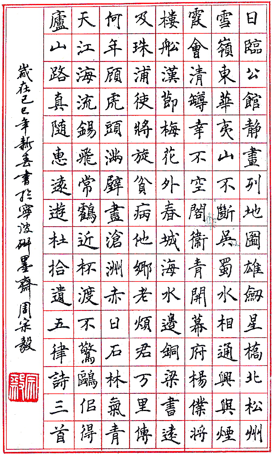 周宗毅钢笔录杜甫诗三首(来源:《钢笔圆珠笔正楷字帖》)