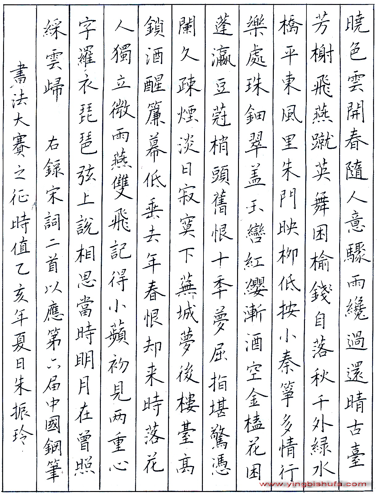 朱振铃硬笔录宋词二首 (来源:《中国钢笔书法》杂志)