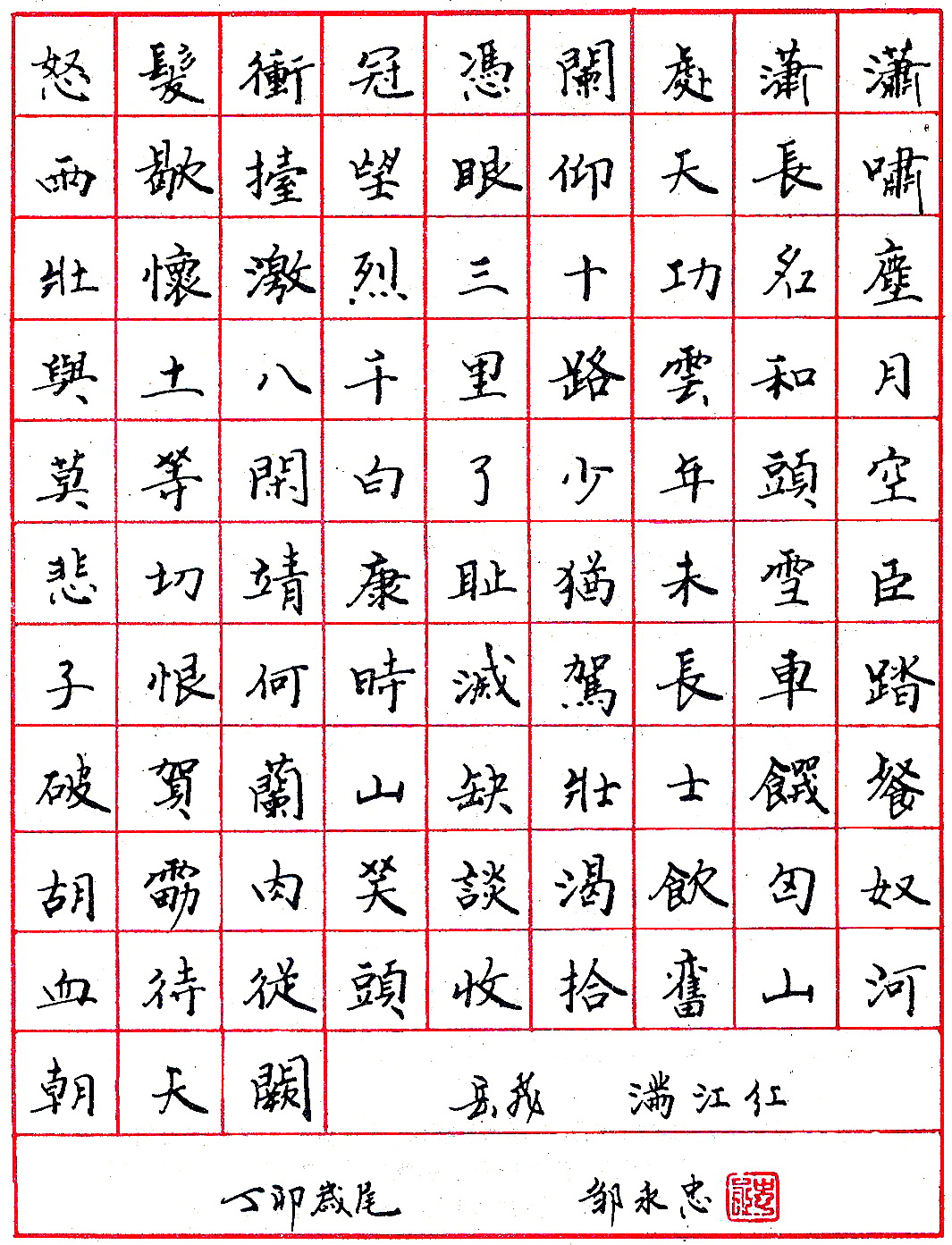 邹永忠钢笔录岳飞《满江红》(来源:《钢笔圆珠笔正楷字帖》)